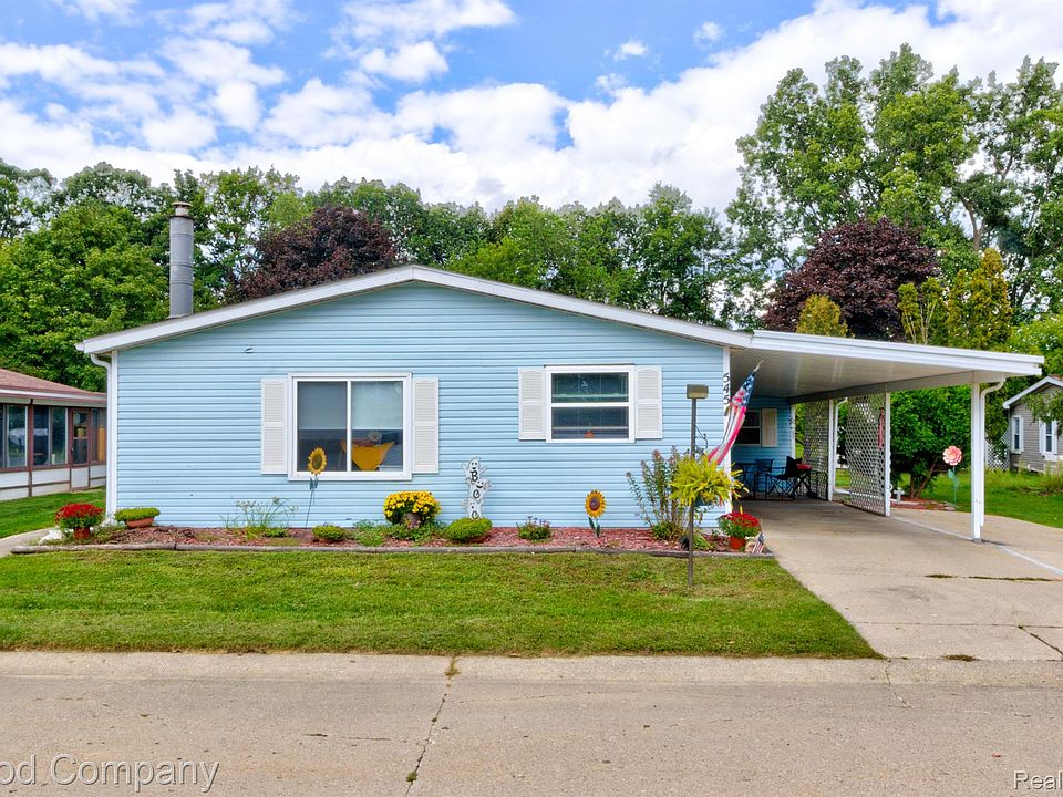Experience convenience and comfort in this well-maintained DOUBLE-WIDE manufactured home within a vibrant 55+ senior community. Offering 2 bedrooms, 2 full baths, and an inviting Great Room with a cathedral ceiling and bay window, this property provides ample room to relax. The primary suite boasts a generously sized walk-in closet and an expansive bath with a stand-up shower and dual-sink vanity. Recent updates, including a new roof, wood laminate flooring, modern stove, refrigerator, and brand new washer and dryer make this home move-in ready. Enjoy a deep lot with no rear neighbors, providing peace and serenity, and benefit from the double-wide driveway. An exterior shed ensures you have plenty of storage space. Your next home awaits in this exceptional senior community! Welcome Home!