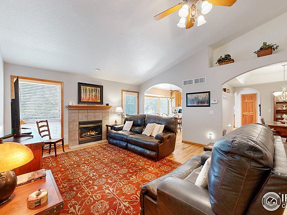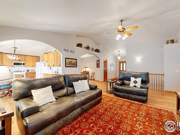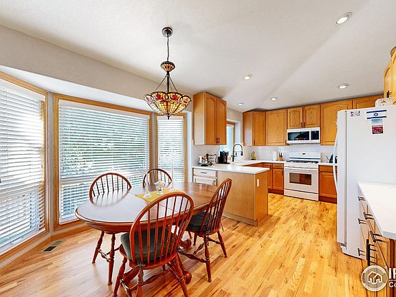 Original owners of this brick/stucco ranch-style home in small subdivision with only 11 homes in the cul-de-sac. Lots of pride of ownership evidenced by the well-kept homes. And NO HOA!! Very little turnover--only 2 have sold in the past 5 years. Nice open floor plan. Hardwood flooring throughout main floor except bedrooms, baths and stairs. Rounded corners, 6-panel doors. Large great room with gas fireplace, vaulted ceiling, open railed stairway to basement. Separate dining room adjacent to kitchen and great room, coved ceiling with design in ceiling. Kitchen updated 2 years ago with new appliances: built-in microwave, gas stove, refrigerator, dishwasher. Quartz countertops, subway tile backsplash, under cabinet lighting over built-in desk, lots of cabinets, pantry, breakfast nook by bay window. Primary bedroom has walk-in closet, bath suite with updated shower surrounded by glass, updated faucets, tile surrounding jetted tub. 2 more bedrooms and MAIN FLOOR LAUNDRY on this level. WALKOUT BASEMENT, sliding door to patio and backyard. 4th bedroom, 3/4 bath and large unfinished area. Mechanicals are in the unfinished area, and a 5th conforming bedroom is possible--escape window in this area. A large trex deck is accessed off the kitchen and primary bedroom, with stair access to back yard. There are auto sprinklers front and back. Wood fencing encloses back yard, gates on both sides and gate to walking path behind lot. Radon mitigation system installed.
