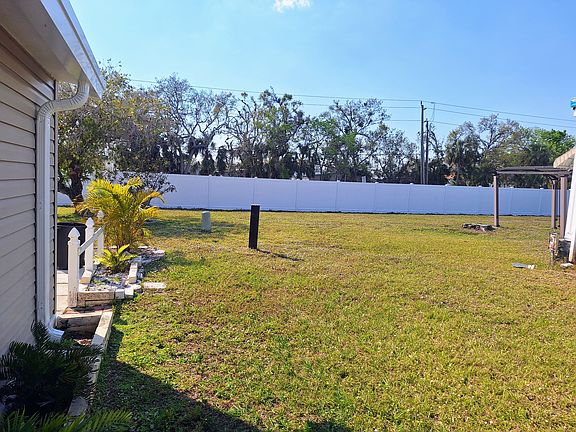 This 55+ age-qualified community has just been listed. This turnkey, unfurnished two-bedroom, two-bathroom home is located in private Colony Cove. From the outside, you're greeted with a massive carport that can house multiple vehicles, and the side brick walk can also provide parking for golf carts. The open layout kitchen is lined with gorgeous luxury vinyl plank, which will continue throughout the home. The center island features new countertops, and the kitchen is also equipped with new stainless steel appliances with a microwave and a deep, double-bowl granite sink. The living room is spacious with a remote-controlled fan/light. The spacious Lanai has sturdy sliding vinyl and screen windows, as well as new carpet. A washer and dryer are also included. Both the guest and master bathrooms have new lighting fixtures. The master bathroom also includes a spacious walk-in shower with a sliding glass door. The master bedroom has a remote-controlled lighting and fan fixture. The master bedroom's walk-in closet has been reconfigured to maximize the space.TVs are included in the master and guest bedrooms, which are connected to an antenna (offering 200 HD channels). The antenna also feeds the living room TV, which comes with an included wall bracket. The laundry area has been moved from its usual outside shed location to indoors, with a pocketed door. Washer and dryer are included. The new back fence has also been replaced, creating excellent privacy. A complete background check would be required on the applicant. The renter pays for electricity and cable, if used. Water, sewer, trash, and lawn care are included. No smoking or vaping indoors, including the lanai. Landscaping maintenance will be provided by the landlord. No cars are parked on the street overnight. No more than two vehicles. No commercial vehicles. A gate key fob will be included with a $25 deposit. A mailbox key will be provided. Minimum lease is one year from the date of signing.