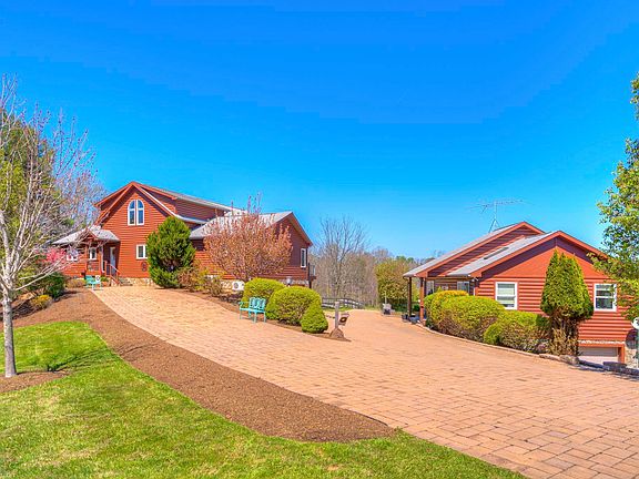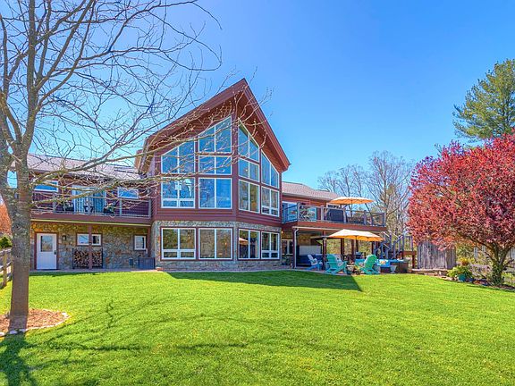 Magnificent custom built home has all the luxury you could ask for! This 3 bedroom, 2 full & 4 half bath, contemporary home is situated on 7.3+ gorgeous acres lined w/ trees for privacy & adorned by beautiful pond w/ fountain, deck for swimming, relaxation & fishing! Patio boasts hot tub & sauna & overlooks the fenced-in yard. Chef's kitchen has gas range w/pot filler & imported back splash from Italy, 2nd electric range, wine rack & chiller, breakfast bar & sky lights & leads easily into formal DR. Cathedral ceilings in LR w/ huge wall of windows to enjoy marvelous mountain views. Primary main level BR has private balcony, walk-in closet, jacuzzi tub, heated floor & large tiled shower. Spacious loft studio area upstairs w/ half bath & full, walk-out bsmt has 2 bedrooms, & plumbing for a 2nd kitchen. Detached workshop/potential guest house has heat pump, half bath, balcony & bsmt below. RV hookup for water & electrical in driveway. Work from home w/ the high speed fiber optic internet!