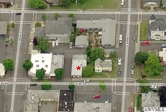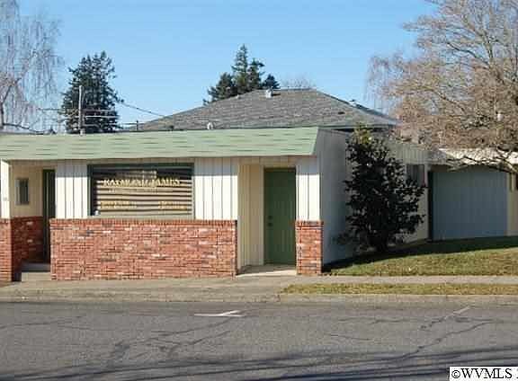 Small office building in downtown Stayton with 3 private office plus open area for 3 desks plus reception desk. Also for sale at a price of $175,000 MLS #664870. For lease at $850 short term beginning rate. Office includes covered carport that could be enclosed.