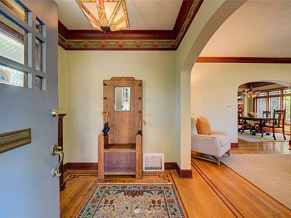 This timeless Craftsman home on a quiet street in beloved Phinney Ridge is completely modernized yet impeccably styled in the highest end Arts & Crafts tradition. Every detail is authentic from original inlaid hardwoods to wall treatments & gorgeous solid oak cabinetry. Meticulously upgraded - beautiful windows, electric, plumbing, insulation, sewer, earthquake. Seller spared no expense to create a subtle masterpiece. Comfortable proportions, nice flow between rooms, large kitchen, private fenced back yard with garage & alley access. Massive clean basement with ample ceiling height ready to be finished to your specs! Private landscaped yard, big front porch, a joy to come home to & just a hop & skip to Phinney Ridge's best!
