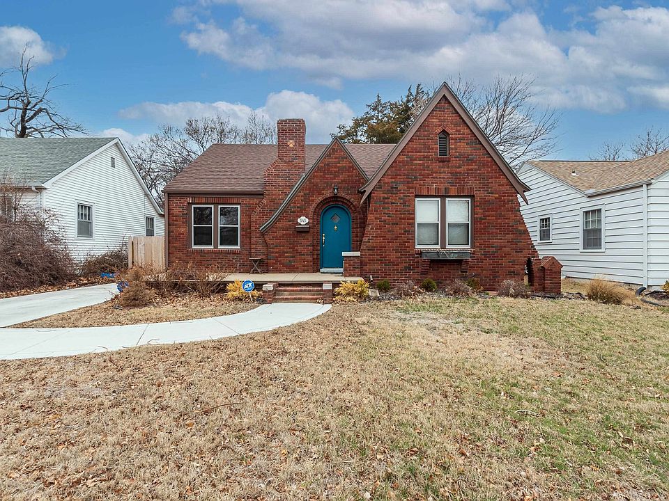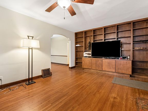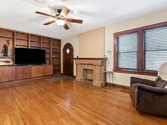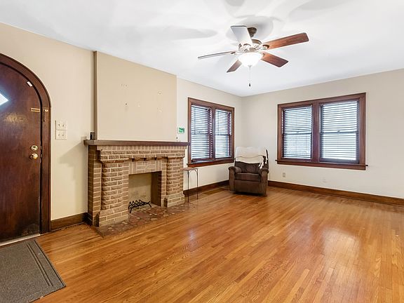 Welcome Home! This charming home has so much to offer. Pulling up to the home you will instantly fall in love with the architecture. The maintenance free brick exterior, newer drive way and arched front door are just to name a few. Entering the home you will be welcomed with original hardwood floors throughout, decorative fireplace, beautiful arch ways and a wall of shelving! The large dining room boasts natural light, and a surprise wet bar. The 2 bedrooms are nice and roomy, one with another wall of shelving and one with a cedar closet. The bathroom has plenty of counter space and the original tile floor. In the hall way there is a laundry chute. The cute kitchen offers nice storage and all kitchen appliances remain with the home. The basement offers plenty of storage as well as the laundry space. Your back yard is a great size, fully fenced and a one car garage. The wood fence to the south is new. Home is being offered AS-IS. Hurry and schedule your showing today!