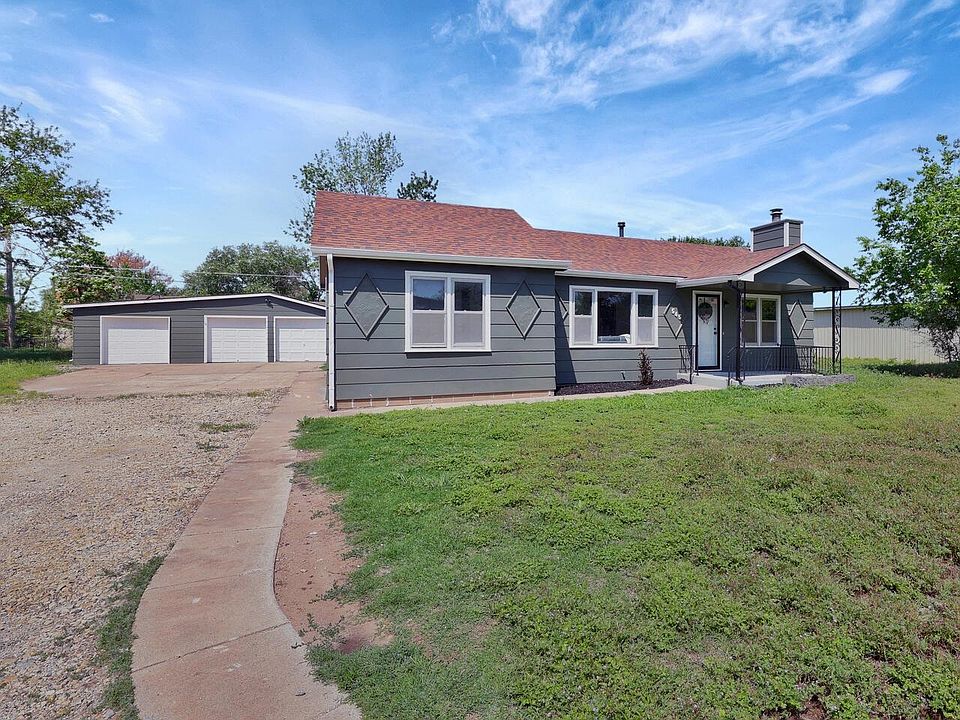 Beautiful remodeled home centrally located in west Wichita. This home is right next to Highway 235 so easy access to get all around the city. On the exterior, there is fresh paint everywhere, some new siding, 3 car oversized garage with a back shop and extra storage room. Garage has 220 electric and could easily fit 4 cars if needed. This is a three bedroom two bathroom home with almost everything remodeled. It has new flooring throughout, new interior paint, new light fixtures and recessed lighting, new painted cabinets, new granite countertops in the bathrooms and kitchen, new ceramic tile surrounds in both bathrooms, new vanities and fixtures, etc. In the basement there is a good sized living room. Backyard is a good size and has a side private side covered patio perfect for entertaining. Feel free to set up your private showing today!