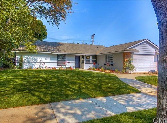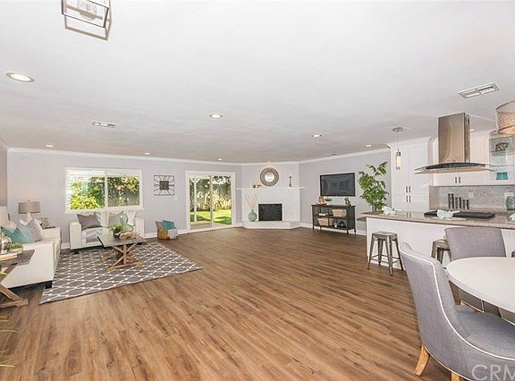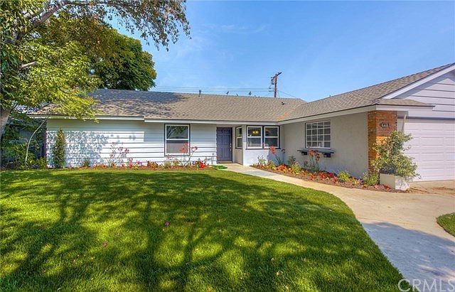 Charming home with 3 bedrooms and 2 baths that has been completely remodeled from top to bottom, walls opened to give the home an entirely open feel. Brand new roof, new laminate wood flooring throughout, ceilings scraped & painted, remodeled and redesigned kitchen and bathrooms, new inside water & sewer pipes, new landscaping plus fresh new grass sod, new windows, wood doors and mirrored closet doors and freshly painted interior and exterior. Kitchen opens into dining area and great room. The kitchen features quartz counters, custom cabinets with soft close drawers, high baseboards, recessed lights and pendant lighting, large island with breakfast bar, and all new Stainless Steel appliances with hood over gas range. Great room includes a corner fireplace, 6" baseboards, laminate wood floors, crown molding, and recessed lights. Both master and secondary bathrooms have new tubs,toilets, showers, quartz counters, custom cabinetry, new mirrors and lighting and porcelain tile floors. Excellent location on tree lined street close to shopping, freeways and schools. More photos coming!