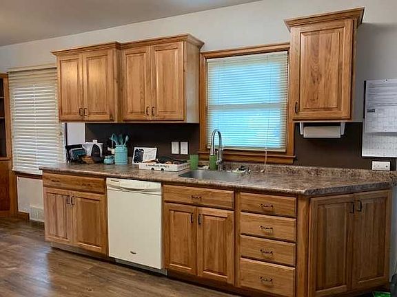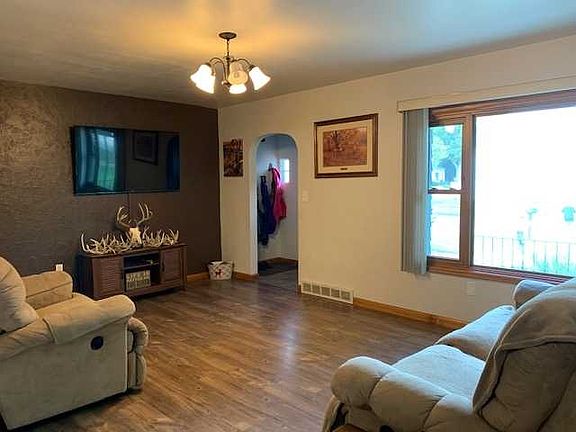 This ranch style home has 3 bedrooms and a full bath on the main level, fresh interior and exterior paint, new flooring in living room and kitchen area, hot water heater in 2014, furnace in 2016, and newer windows. Basement features a toilet and shower, family room, storage room, and another large room with laundry and plenty of storage. Home sits on a large corner lot plenty big for another garage off the alley. It currently has an attached carport and a detached single car garage with cabinets, workbench and window a/c. Seller is planting grass seed in September.