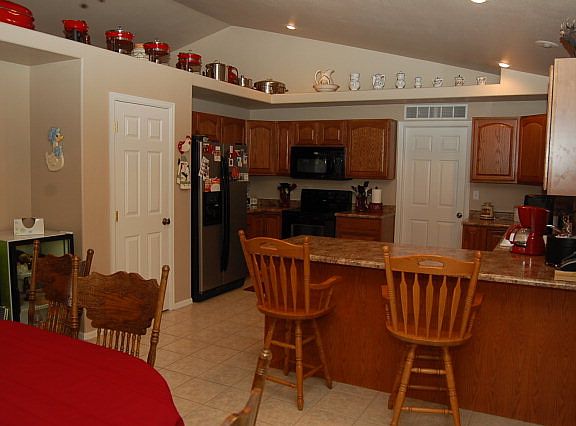 Like new rancher with 5 bedrooms and 3 baths with over 3400 sq. ft. finished, vaulted ceilings, and bay window. Come relax on the covered patio, and enjoy the beautiful views! Basement has a huge family room with a pellet stove and a full bath with a jetted tub, and tons of storage. Come look today you wont' be disappointed.
