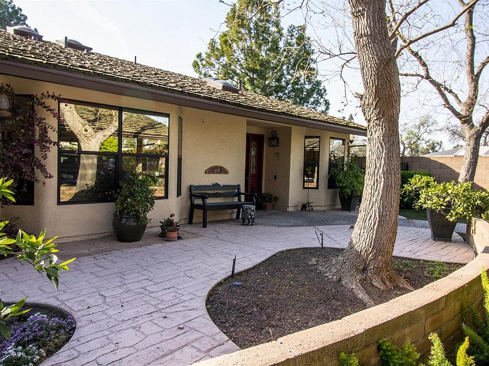 Country Club Living at it's finest. This condo has style as soon as you hit the front entry, with an office, and sitting room/library. The spacious living room features a fireplace large windows over looking the pool, oversize fenced patio, fabulous landscaping with majestic oaks and manicured common area. The home features wood look ceramic flooring, updated kitchen with granite and new sliding doors throughout. Bathrooms have been remodeled to complete this home for a move in ready style. Plenty of room to park your golf cart in the shed off the car port, plus you have private access to the Country Club thru the owners gate off the pool area.
