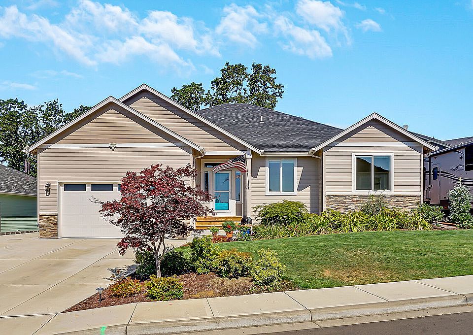 This exquisite contemporary styled single level home is located in Cynthian Oaks on the hill. Turn key and only 4yrs old. Kitchen features premium quality granite countertops with travertine and glass full backsplash and seating at large island. Cabinetry is a rich stained finish with soft close doors and drawers. Drawers are full extension and some full extension slide outs in lower cabinets. Crown molding adds a beautiful finishing touch. Professional upgraded matching appliances. Elegant large format 20” X 20” porcelain tile flows throughout the entire main living space with honed quartzite surround enhancing a gas fireplace. Both bathrooms and laundry feature premium quality granite counters. Large master bath with walk in tile shower as well as soaking tub. Laundry hosts in wall ironing board. High quality 30 year warranty carpet and pad softens 3 bedrooms and multi-function room. Large master suite and large walk-in closet with custom shelving. Ample great room with ceilings that soar to 11 feet. Custom made and professionally installed cellular shades in all windows. Landscaped front and back yards with a covered rear patio make for a park like setting. 2 car garage with 12 foot ceiling for extra storage solutions.Plenty of parking for those extra toys and a real RV parking space that currently accommodates a 40 foot 5th wheel. Contact Rich at 541-706-0063 for a showing. Make this home yours today! {Courtesy to brokers}