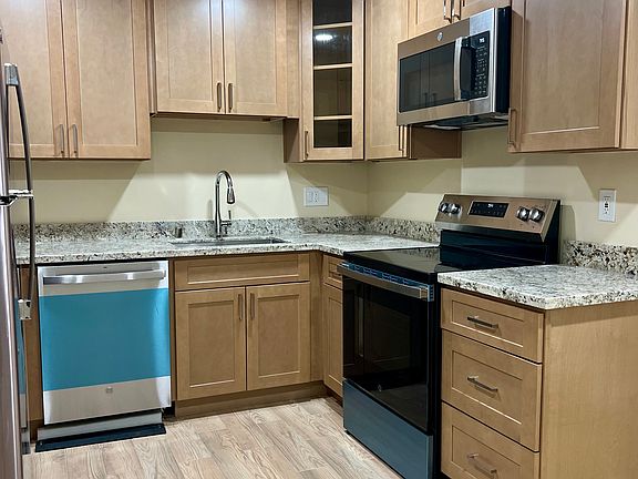- Beautiful new kitchen with custom cabinets (new refrigerator, electric range/oven, dishwasher, cabinets, granite countertops, sink, garbage disposal, and faucet)