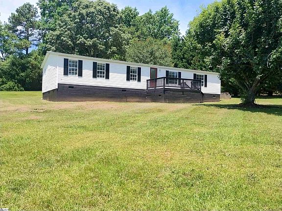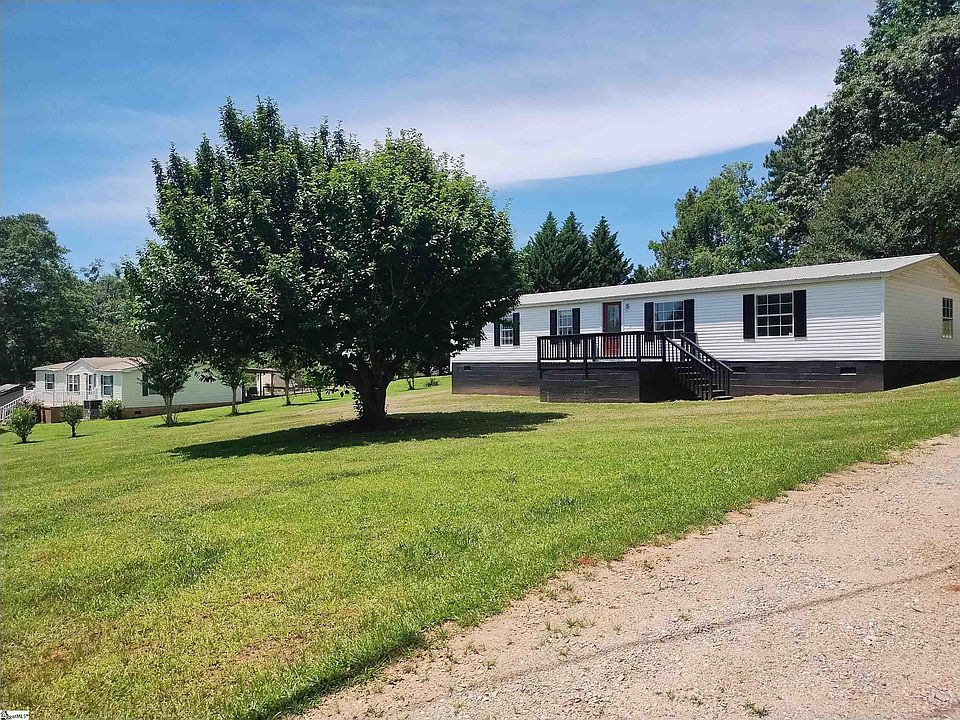 This home is a 3 bedroom 2 bath manufactured home on a permanent foundation and is de-titled. It sits on .75ac. There is a small outbuilding tucked in the back for any yard tools or storage needs. The home has been freshly painted throughout. New vinyl flooring has been installed. The living room is very spacious with a sliding glass door that leads out to a new deck on the rear of the home. It is located very close to all the activities downtown Easley has to provide without being in the city limits. Very peaceful area.