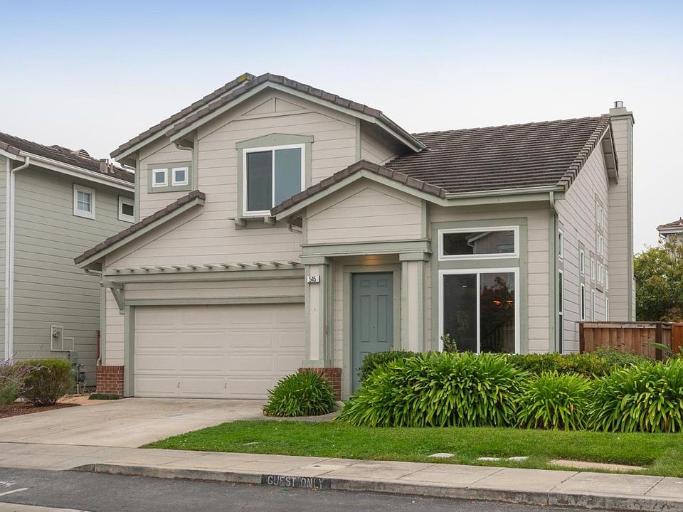 Lovely home in desirable Stratford Bay, a waterfront community with pool / spa / boat dock. Enjoy sailing, canoeing or your favorite water sport! Enter into an airy & light-filled living area with high ceilings & hardwood floor. Beautifully remodeled kitchen with center island, granite countertops,,stainless appliances. Tiled floor in family room/kitchen area for easy maintenance. Inviting family room with high ceilings. Enjoy your private, low maintenance flagstone backyard with no house directly behind you! Built-in awning shelters you from hot sun and rain. Spacious master suite with ceiling fan, walk-in closet, dual sink & tub. Linen closet in hallway. Great location - walk to top-rated Sandpiper School; close to park, bike & jogging trails. Redwood Shores is strategically located between San Francisco & Silicon Valley. It is home to Oracle, Electronic Arts, the Bay Club & many other businesses. Enjoy resort-style living in a quiet setting! OFFERS MONDAY, 10/19.