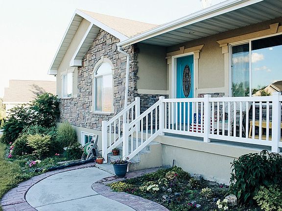 Come live in BEAUTIFUL MENDON! Large and well-designed home with fenced in back yard. Main floor consists of an open floor plan, with 3 bedrooms, 2 bathrooms, laundry room, kitchen, dining and living room. Beautiful wood finished flooring and tiled kitchen with large island, perfect for entertaining. Large living room featuring vaulted ceilings and a big bay window. Has a spacious master suite with walk-in closet and connecting master bath featuring a stand-alone shower and separate soaking tub. Two other bedrooms with storage space and a hallway bathroom with tub and shower combo. So much storage space!! Basement has an expansive living area with pellet stove, a huge storage room and a separate cold storage space. One large bathroom with tub and shower combo. One oversized bedroom and one average bedroom. This home comes with breath taking mountain sunsets from your very own back deck. With a huge garden space, small fruit trees, chicken condo and storage shed you still have a wide-open back yard for all your family fun. The garage has normal two car garage space with extended bump out for a third car. Plenty of gravel parking on side of house as well. *NEW CARPET in the basement coming soon!
