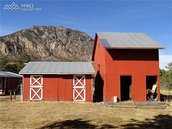 Incredible horse property - look out your kitchen and dining room windows at the beautiful Cheyenne Mountain in this mountain retreat home. You will love the peace and quiet and beauty of the wildlife to include turkeys, bobcats, deer, fox and an occasional elk! 6-stall barn with hay loft, 2-stall loafing shed and a great tack room are included. The home is on a septic system and local water district. The expansive composite deck is so comfortable to entertain or just sit and watch the wildlife. It is 15 minutes to downtown, but feels like you're miles away from it all. Master suite is on the main level with large master bath and a loft you reach with a library ladder. Kitchen was updated 6 years ago to include granite countertops, new cabinets and Brazilian Cherry floors. Interior doors are custom made with some that have hand forged hinges and there is custom wainscotting in the dining room. This is truly unique in so many ways you have to see it! So much storage with huge kitchen pantry and loft in master. This is being sold as-is.
