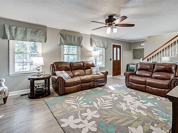 A Beautiful home in Pinewood Country Club with golf course views! This Immaculate home features new paint outside and inside, new windows, newer roof and gutters. Main floor has LVT flooring and upstairs has all new carpet. Kitchen cabinets have new paint. Granite countertops throughout! All kitchen appliances remain. Newer refrigerator. Breakfast area in the kitchen. Lovely formal dining room. Living room has a great fireplace with gas logs. Double doors from the kitchen open out onto this newer two tiered deck with nice views of the golf course! Back porch features a mounted TV that makes this outdoor space great for entertaining! Fenced in backyard with a playset. Enjoy your coffee in the mornings on your front porch! Double garage and a large corner lot. Nice landscaping and just a short walk to the clubhouse and pool! All this in the wonderful Pinewood Country Club Subdivision! Seller is related to agent.