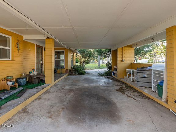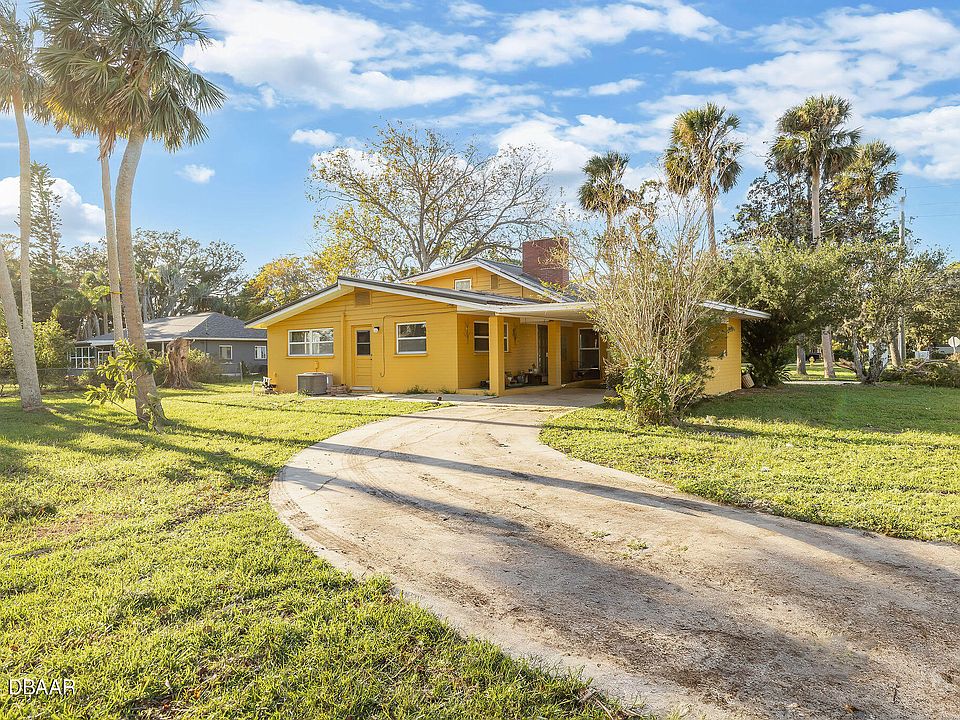 CASH ONLY! Estate Sale & Investment Opportunity for DIY enthusiasts. Waiting for your creative touch. With a little TLC, this 2 Bedroom / 2 Full Bath home has the potential to become a dream haven. Take advantage of this amazing opportunity to add value and personalize this property. Charming Corner lot home with unique layout, exposed wood vaulted ceilings. NEVER FLOODED! Circular driveway with a covered carport. Main level contains nice foyer entry from covered carport, bedroom with private entrance, large kitchen with ample cabinetry, pass through window to an adjoining formal dining room, with sliding glass doors. Full bath (shower/tub combo), laundry room with washer /dryer hookups & storage cabinets. Cozy large living room with fireplace. Upstairs contains another bedroom with a full bath (shower/tub combo). Quick drive to the beaches or Daytona Speedway. Convenient access to shopping & restaurants. Roof replaced in 2010. All information taken from the tax record and while deemed reliable, cannot be guaranteed.