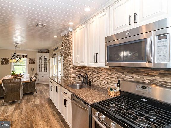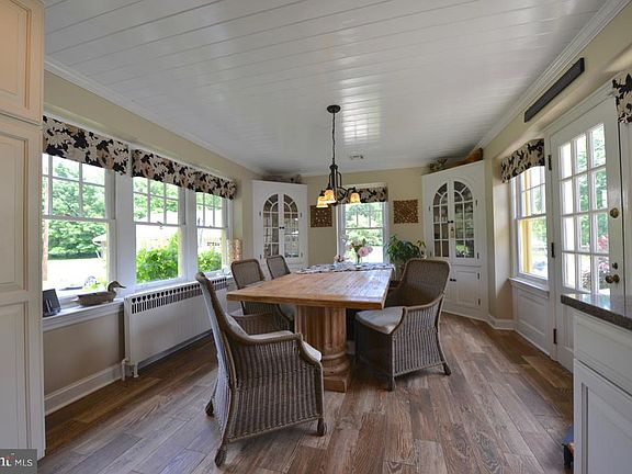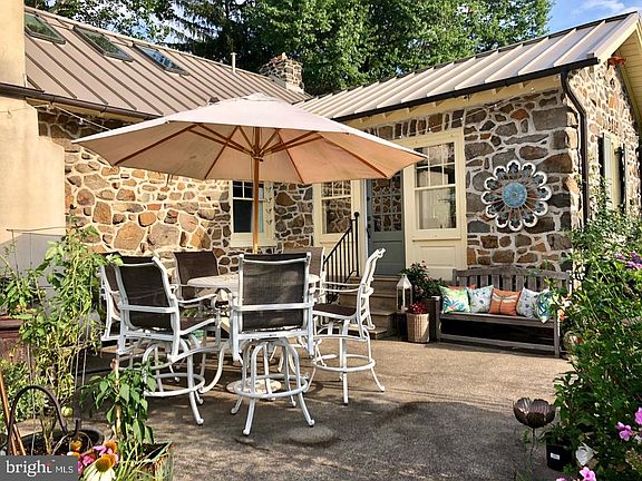 As sunlight warms the natural stone exterior of 545 Rock Hill Road, faint whispers of history rustle through the fields. Built in the 1850~s, local legend relates Roy Rogers bought Trigger from this farm! Calm, still and peaceful aptly describe the bucolic setting of 545 Rock Hill. Both inside and out, this Stone Carriage Style Home is a classic example of the skill, craftsmanship and quality one would expect of its era ~ artfully updated and carefully maintained, a flawless blend of old and new. Entering the home from the rear patio into the Dining Room, a sun filled large open area with Ceramic wood tile flooring, crown molding and tongue & groove ceiling, flanked by two built in china cabinets. The Kitchen extends the Dining area with the flooring continued throughout. The custom cabinets have a colonial reveal with dark accent hardware. The dark quartz counter and multi textured stone backsplash provide a tasteful contrast. Under cabinet lighting and recessed ceiling lighting illuminate the fully equipped kitchen workspace. In the spacious Living Room you will find wood flooring with an inlay pattern, and an old stone fireplace fully operational. The ceiling is complete with white tongue and groove planning trimmed with crown molding. Traditional and timeless details are evident in the spacious FIRST FLOOR Master Bedroom with refinished old hardwood floors, white tongue and groove ceiling planks and crown molding. There are two built in closets flanking a beautiful window seat. Directly across the hall is the Master Bathroom, featuring a quartz top vanity and a custom 3 sided glass shower. The shower contains multiple water jets and a supersized 16~ rain shower head. The bath is adorned in multi colored slate on the walls and floor. Off the living room is another room presently used as a work out room continuing the wood flooring from the living room, two walls of windows and two closets. This room is versatile in nature, could be a home office or