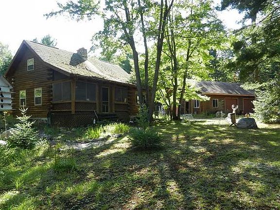 Full log home is just a stone's throw away from the Nicolet National Forest. This property boasts almost 10 acres of level wooded lands, a 3+ car garage, and a 2-story home. Recently updated with a new roof, staircases, and all new deck railings. Architectural details include vaulted ceiling with fieldstone fireplace, loft overlooking the living room, and cozy screen porch. Wonderful location offering privacy, Northwoods recreation, and near to the Three Lakes Chain of lakes.