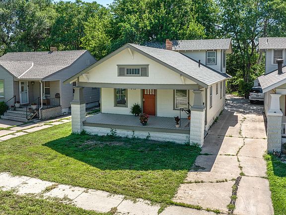 Discover the charm of this inviting four-bedroom home nestled in central Wichita, offering effortless access to I-135 and Kellogg. Begin your mornings on the tranquil covered front porch, enjoying a moment with your favorite cup of coffee. The first floor welcomes you to a living room filled with natural light, two comfortable bedrooms, a well-appointed bathroom, and a spacious kitchen perfect for culinary endeavors and gatherings. You will find laundry hook-ups in the unfinished basement. On the second floor, two additional bedrooms provide ample privacy, spacing out the rooms this home has to offer. A detached two-car garage at the rear of the property ensures plenty of room for vehicles and storage. Embrace the warmth and convenience of this centrally located Wichita retreat.