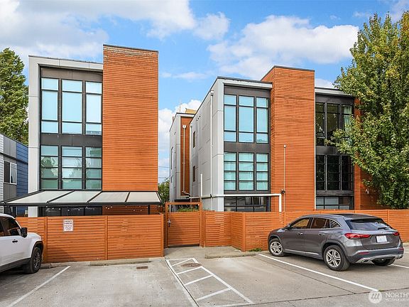 Welcome to this stunning 2 BD, 3 BA industrial modern loft in vibrant South Park. A dramatic 2-story motorized roll-up glass door fills the home w natural light & serves as a bold architectural centerpiece. The lower level features radiant-heated polished concrete floors & 2 bedrooms, including a primary w private garden patio. Upstairs offers a spacious great room w 20-ft ceilings, patio, & kitchen w new fridge & dishwasher. The top-floor loft includes a full-level flex space w 3/4 bath & laundry, perfect as a studio, office, or guest suite. Enjoy a large private rooftop deck w gas fire pit, dedicated parking, mature trees & low-maintenance living on a quiet street w great neighbors. Ideally located near parks, dining, & commuter routes.
