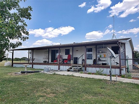 The sky is calling! Fifteen wide open acres just outside of Bells, Tx with easy access to Hwy 69 and only 30 miles from Mckinney. Partially updated three bedroom, two bath manufactured home features new flooring, trim and paint. Large master bedroom with en suite and walk-in closet. Wonderful covered front & back porches overlook the fenced-in front & back yard areas. Large barn with private air-conditioned office, tack room, workbench, chicken coop and large air compressor. Additional workshop with electric and wood burning stove, great area for woodworking or reloading. 12'x20' carport, 8'x40' shipping container and a partially finished workshop also included. Horses, cattle, goats, chickens- all are welcome!
