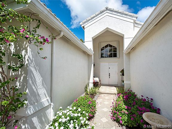 Welcome to this private tropical oasis in the guard gated community of The Falls in Weston. Relaxing is easy in the large chromotherapy jetted hot tub surrounded by Key Lime, Plumeria, and Coconut trees! Spacious one story 4 bed / 2.5 bath home with ceramic flooring, large master walk-in closet, storm accordion shutters, new A/C, and new hot water heater. Low HOA fees with excellent community amenities including pool, basketball court, volleyball court, and playground. Close to shopping and highways. In the boundaries of Weston’s desirable “A” rated public schools.