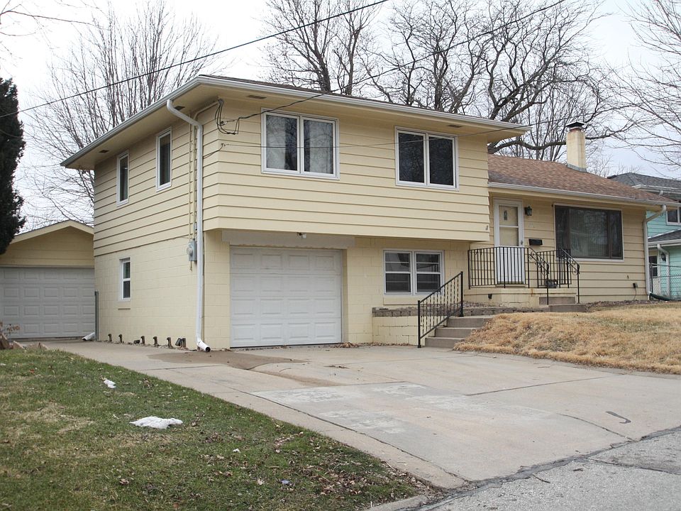 Fantastic house w/incredible views from the private backyard, just blocks from the elem school. Large 1 1/2 car detached and 1 car attached garage. Great open floor plan has a lovely updated kitchen and 2 baths and large drop zone. Wood flooring and newer carpet plus New furnace in 2013. Lower level has wood burning stove with painted concrete flooring and huge storage and laundry area.
