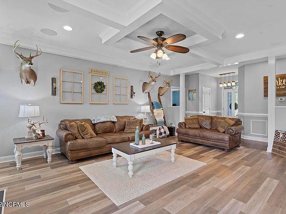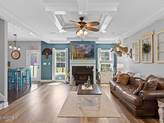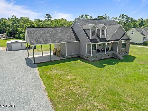 With over 2 acres, this home exudes perfection. Acreage, NO HOA, open concept... the list goes on. Some of the most adored features include the detached garage, the covered back porch, and the open concept floor plan. What makes this home stand out are the little details, from the gorgeous coffered ceilings in the family room to the custom wood backsplash in the kitchen. The home comes complete with a master bedroom suite, a guest bathroom, two guest bedrooms, and a spacious second-floor bonus room with a full bath. Every detail of this home accents another. In addition, this home is situated a half-mile from the Turkey Creek public boat ramp that leads out to the Intracoastal waterway and a 15-minute drive to Camp Lejeune's back gate. Other nearby amenities are the North Shore Golf Course, North Topsail Beach, and several local fish markets for your fresh local catch! Check out our 3D tour or call for a personal showing today!