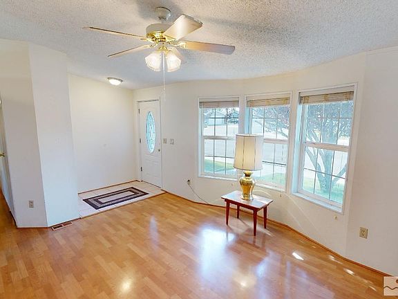 *Seller Offering $2,000 toward Buyers closing costs or interest rate buy down!* Check out this 4 beds, 2 bath home with a detached 2 car garage in town on a corner lot. Stucco exterior and new roof. Beautifully landscaped with mature trees and grass with sprinkler system. The back is privacy fenced with a covered patio and storage shed. Inside you have lots of natural light, a split bedroom floor plan with a large primary bedroom with double closets, double sinks, and shower. The kitchen is functional with ample cabinet and counter space, stainless steel appliances and a breakfast bar. You have a Separate living room, great room style family room with gas log fireplace and great room style dining room as well. The home has a water softener and central AC that is just a couple of years old.