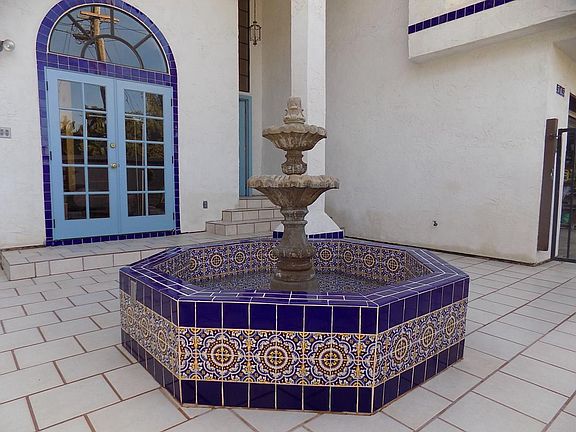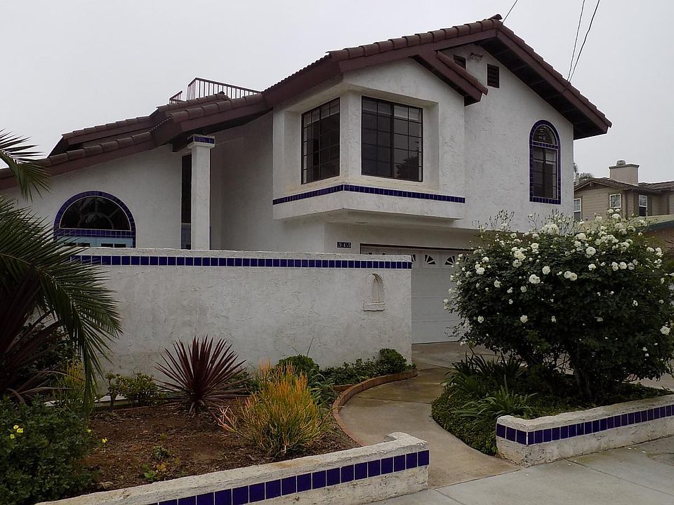 Spacious 4 bedroom 2.5 bath home with 2 car garage Gated tiled entry courtyard with fountain Large master suite includes spiral staircase access to open artist?s loft or study. Private master Suite deck Open plan master bath with double vanity sinks, Jacuzzi tub for two, and large step in shower with glass doors and double shower heads. Three additional light and airy bedrooms Full bath includes tub/shower, dual hand painted sinks and skylight Raised dining area and open plan kitchen Living room with wood burning fireplace The family room opens into a bonus room and office with closet. Perfect for indoor/outdoor living. Rear access through multiple French doors. Raised wood deck, tiled patio and steps down to lawn and putting green Laundry room Guest bath includes hand painted sink Cardiff Elementary and San Dieguito Unified School districts 2 blocks to community park Easy Walking distance to shopping and beach Owner pays for trash, sewer, water and yard maintenance. Tenant pays gas and electricity, cable and internet. Pets may be considered.