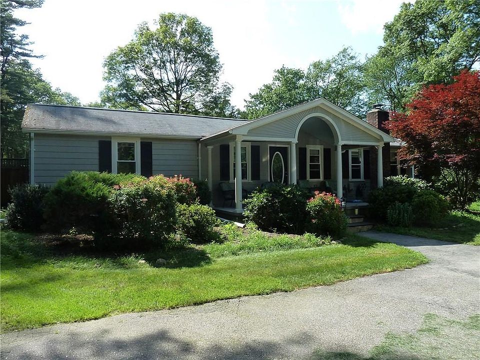 Open concept ranch with an acre of privacy. 2-3 beds. Circular drive, front and rear decks, fully fenced yard, 20x30 garage. Updated interior including stainless appliances and quartz counter tops, luxury wood plank vinyl flooring throughout, efficient Harman wood pellet stove. Partial basement with bulkhead and laundry.