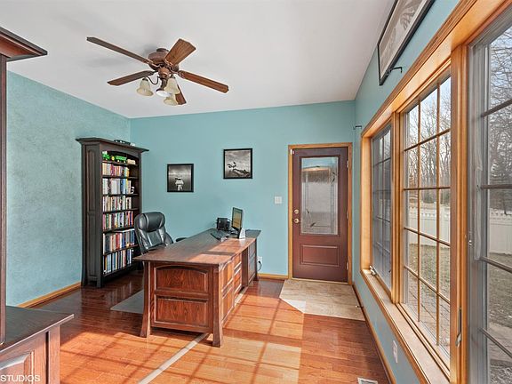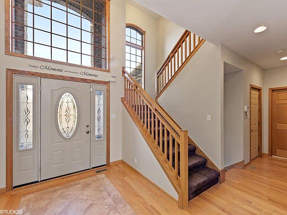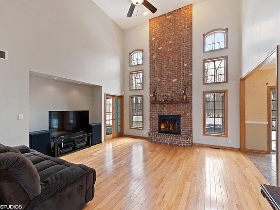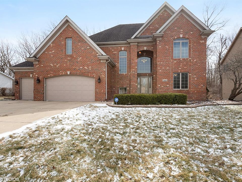 STUNNING 2-STORY ON A PRIVATE .59 ACRE LOT, backing up to woods and creek in town! Custom built 2 x 6 Brick and Cedar home by DETMAR & SONS is loaded with quality with custom crafted woodworking,6-panel solid wood doors,hardwood floors, crown molding and more! Dramatic 2-Story Entry and Living Room with floor to ceiling masonry Fireplace. Kitchen boasts Hickory Cabinets, stainless steel appliances, granite counter tops, eat-in Kitchen and triple glass doors to the expansive outside deck. Formal Dining Room, Office, 1.2 Guest Bath, Laundry Room and Screen Porch complete the main level. Upstairs offers split layout design with Master Bedroom Suite on the east side of the house featuring a tray ceiling, double vanities, whirlpool bath, shower AND a 16 x 6 (plus 6 x 6) L-Shaped closet with a window! West side of upstairs has a full bath and 2 more bedrooms.HUGE Basement is finished with Rec Room/Media Room, 3/4 Bath and an additional Guest Room. Fenced yard, brick patio & 3 Car Garage.