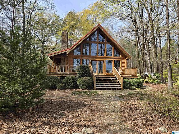 Rare opportunity on Logan Martin Lake! One acre level lot with an adorable log home in the woods. It's like Gatlinburg has come to Logan Martin! Well maintained home with new appliances, new water heater, and new HVAC! This can be your weekend getaway, short term rental, or full time home. Great family room with a stone fireplace equipped with a wood stove. Large master bedroom with a walk-in closet that has doubled as a nursery. The loft is spacious with it's own bath and beautiful views of the lake. The Heart Pine floors were repurposed from the historic Purefoy Hotel of Talladega! With the sleeper sofa in the great room, king bed in the master, queen bed and a futon in the loft, could currently sleep 7-8.