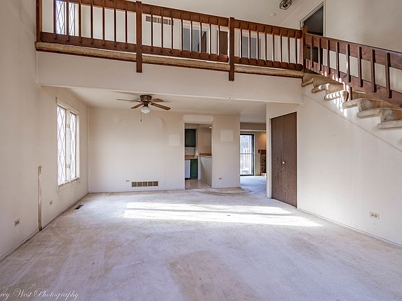 Looking for your very own flip? Come and realize the massive potential of this groovy, well built, 2 bed / 1.5 bath townhome! When looking for an investment property, you want a great location, and a home that just needs some cosmetic updating. With some updates, the living room along with the 18 foot ceilings and open staircase will become an absolute wow moment! The kitchen opens to the family room with a gas starter fireplace which both present more creative design opportunities! Off of the family room is the convenient first floor laundry, as well as a sliding glass door to the freshly repaired (2022) and stained, spacious deck (14 x 15) out back for relaxing or entertaining. Both bedrooms are located upstairs and accompanied by a loft! Main bedroom has a large walk-in closet and connected to the shared full bath on the 2nd floor. Multiple living and entertaining areas, sky high ceilings, cozy fireplace, tons of storage! FULL basement is waiting for your finishing touches to add even more living space and storage! Don't let your car sit out in the rain or snow, park it in the 1 car garage. Four Colonies community has a very nice pool and a clubhouse providing the resort style living. Highly rates schools! Walking distance to parks, lake and the beach! Minutes from Randall Road, and 1.5 miles from Crystal Lake Main Beach. Estate sale - "As-is".