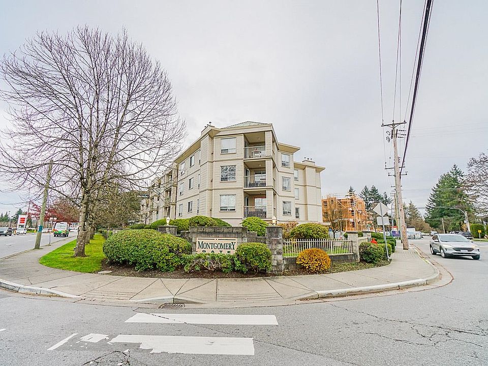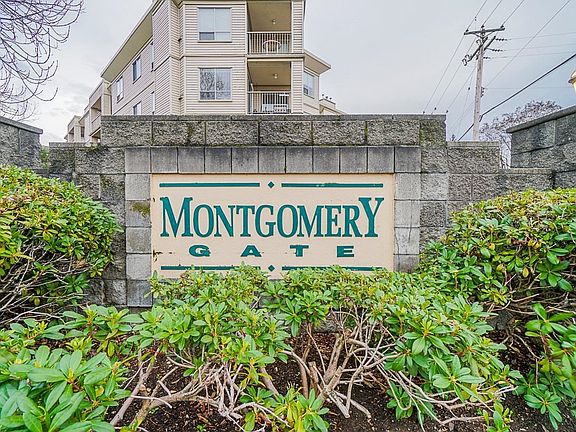 Welcome to the sought after "MONTGOMERY GATE"! Bright and spacious 2 bed 2 bath corner unit, ideal floorplan with bedrooms on opposite sides of the unit for ultimate privacy! Stainless steel appliances, previously updated kitchen, bath and floors. Gas fireplace is included in maintenance fee, storage locker and secured parking. Quiet, well run building, walking distance to shopping, restaurants and all amenities. First floor, but not on ground level for added security. RAINSCREENED healthy Bldg w/pro-active strata, no rentals, secure U/G pkg, new roof in 2010. 1 small pet allowed. Fantastic location: Safeway, Starbucks, Restaurants, walking trails, medical, future skytrain & all that Langley City has to offer!