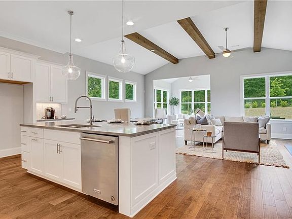 Ranch, Move-in-Ready, Farmhouse style Ranch 1 1/2 with a 3rd car garage. This designer home has 3 large stained beams in the great room, with open concept living. Guests will have privacy with an en suite guest room, sunroom, and loft up. 3 bedroom, 3.5 bathrooms, designer kitchen with SS appliances, quartz countertops. white cabinets that have soft close, double trash drawer and wood shelf pull outs in every cabinet. Large master suite with leads to a bright master bath spa with a huge walk-in shower. This is the model home in the cutest farmhouse style community in Cumming! 5 minutes from Sawnee Mountain preserve where the Big Creek Trail has been connected and 10 minutes from D'town Cumming. This model is currentlyunder contract, but we have the floor plan available to build. 2020-10-22