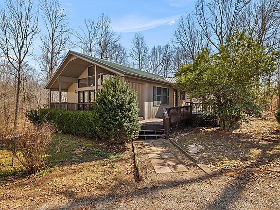 This home offers a peaceful escape surrounded by trees and scenic nature. It is situated in a private country setting and provides the blend of seclusion and comfort. The home has an open-concept living, dining and kitchen area, making it perfect for family gatherings and entertaining guests. The large windows in the front of the house provides a bright and airy view of outside and the cozy gas fireplace adds comfort and charm to the room on chilly evenings. This home is located in a quiet wooded area and offers much privacy with natural surroundings that create a serene atmosphere. The home has a covered deck in the front and on the side of the house and is ideal for relaxation. The home has a full unfinished basement with poured concrete walls and provided endless possibilities. It can be transformed into additional living space, whether you're looking to add bedrooms, a home office or a recreation room. This is a must see. Call Linda Ramsey 270-339-1745 for a viewing.
