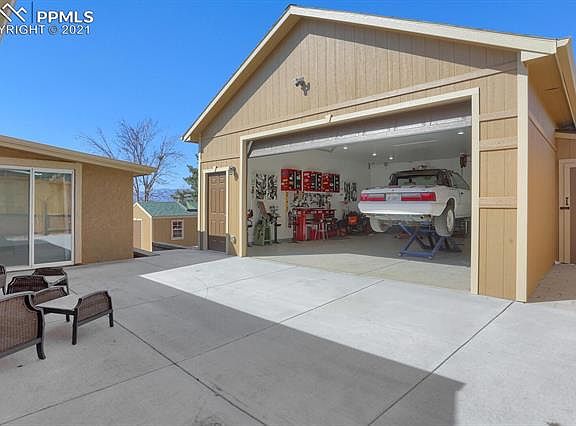 Well Maintained Stucco Home that has a 4 Car Detached Garage/Shop (Total of 6 Stalls) with Pikes Peak and Front Range Views! 2 Year Old 30 x 24 Detached Garage has a gas stub for a future furnace, 220, and 30 x 10 storage in attic. Home Boasts New Carpet, New Interior Paint, Stainless Steel Appliances, Refinished Kitchen Cabinets, Gas, Range, New Leaded Glass Front Door. Living Room and Kitchen have vaulted ceilings. Family Room has a brick hearth and a wood burning stove for those cold winter nights. 18 x 12 Sunroom (not included in square footage) can be used in a variety of ways. 15 x 10 Private Balcony off Master Bedroom to gaze at the mountains and sunsets. Exterior was painted last year, roof is 2 years old, Pella screens doors, newer fence. Extra Wide Driveway leads back to the detached garage.