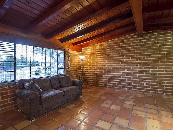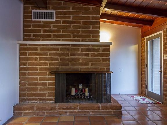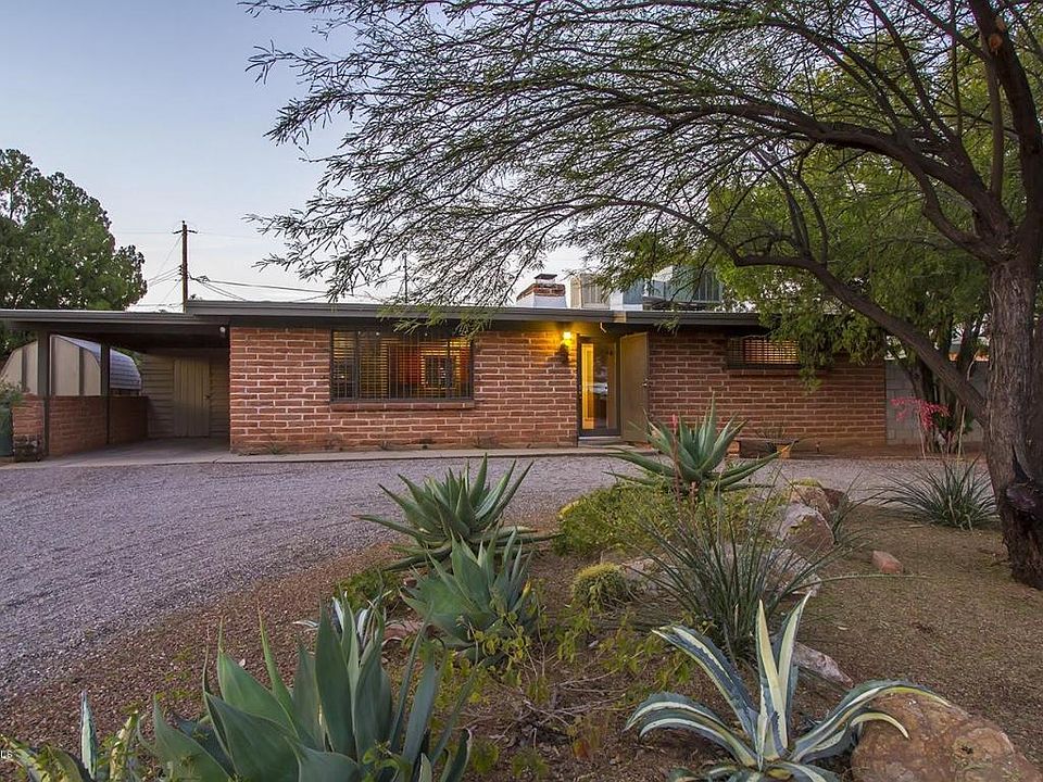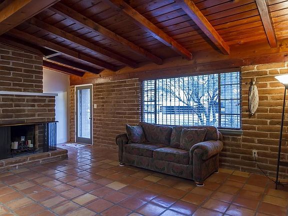 From the moment you step inside this 1954 Burnt Adobe Sweetie, you'll know you've found home. The original living room, dining room and kitchen have been opened up to create an exceptionally large interior space. Exposed wood beams and tongue and groove on the ceiling, burnt adobe on the walls, and saltillo flooringmake the great room warm and inviting. In the middle of the house is a mid-century two-sided fireplace. The bedrooms are amply-sized. The bath has been updated. There is a covered patio at the rear, with a flagstone walkway to a large patio covered with shade sails, and surrounded by native and exotic trees and shrubs. Rear yard is walled, and has plenty of storage. Call for an appointment today. Let me show you your new home!