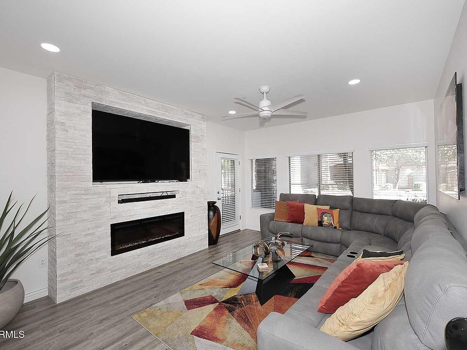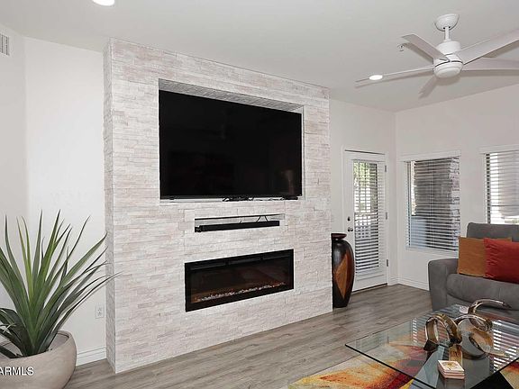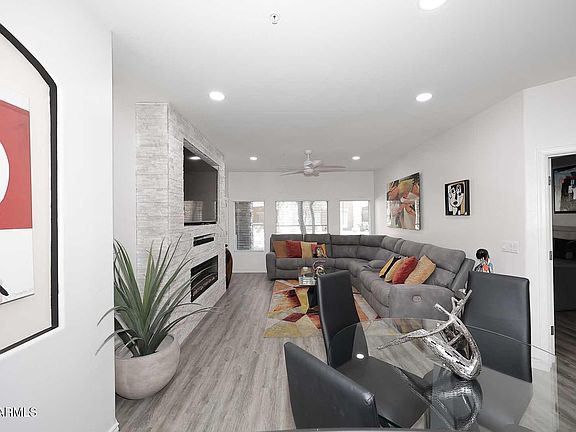 Move In Ready Luxurious Elegant High End Total Remodel Ground Floor End Unit Prime Location Super Convenient To Building Exterior Doors & Elevator. 24 Hour Guard Gate, Resort Style Living For Permanent Or Lock & Leave Residency. Luxury Vinyl Wood Plank Throughout Sophisticated Custom Stacked Stone Accent Wall With Mulit-Color Electric Fireplace & 85'' TV. Spacious Split Floorplan 2 Bed/2 Bath Plus Flex Room Kitchen Breakfast Bar Granite Counters/Backsplash Vanilla Cabinets Stainless Appliances Gas Stove. Beautifully Updated Bathrooms Primary Enjoys Double Sinks Separate Shower & Soaker Tub....Attention To Detail Throughout! Adjacent To Desert Ridge & 101 North. Amenities: Heated Pools/Spas, State-Of-Art Fitness Centers, Clubhouses, Planned Comm Events, Concierge, Easy Access 101 Freeway.