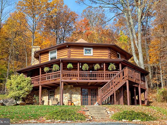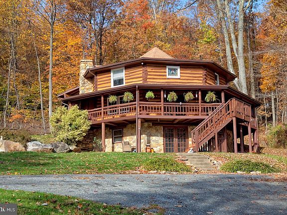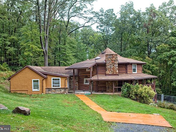 One of a kind! Purely a passion project for the current owner, it was built in 1980 with his own custom design. Offering 3 bedrooms and 3 full baths, just over 3,000 square feet, and 5.36 acres of wooded land. Inside youll find sprawling oak logs and stonework that was harvested from this very property! Oak hardwood floors, slate and ceramic tiling, beautiful stained glass window features, skylights, a spiral staircase, and bedroom level laundry. The rear accessory unit is currently being used as an apartment and offers a full suite of bedroom, a full bath, a living room, a dining room, a full kitchen, and laundry. Originally the master suite, it can easily be converted back to accommodate main-level living in this log cabin. OR keep it as an income-producing apartment, an in-law suitethe possibilities are endless! Also on the property is a 25X30 frame shed with concrete flooring with an attached storage area AND an older frame sawmill structure with stone flooring. Both are perfect for a workshop or hobby area! Gambrill State Park is minutes away, along with other Federal and State parks. This property is perfect for outdoor enthusiasts, a weekend getaway, or a fantastic Airbnb! No city taxes or HOA. Property being sold AS-IS. Book your appointment soon! WATCH THE VIDEO ON YOUTUBE!