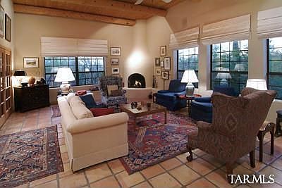 Exemplary southwest home, built by Mike Wachs; will delight your most discriminating buyers; artfully appointed with viga beams, talavera and saltillo tile, built-in bookshelves, 5 fireplaces, solid wood doors, beautiful cabinets with punched-tin inserts; custom recessed lighting, surround sound, built-in-vac, Viking