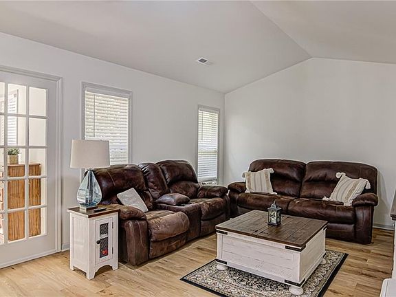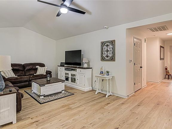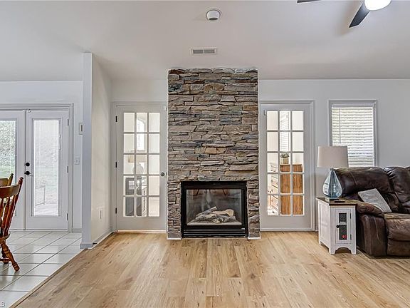 Welcome to this beautifully updated one-level living home! Recent improvements include a new Garage Door (2024) New Roof (2023) and New heat pump (2022), New French Doors and more! The stunning LVP flooring flows throughout the home, leading you into a cozy living room with cathedral ceilings and a floor-to-ceiling rock fireplace with gas logs. The living room seamlessly connects to a modern kitchen, featuring new stainless steel appliances, granite countertops, and a stylish subway tile backsplash. From the kitchen there's french doors that open onto the back patio. The home also offers a versatile sunroom, ideal as an office or flex space. The spacious primary ensuite includes an oversized walk-in closet and a bathroom with double sinks. Enjoy the neighborhood pool which is just a few steps away! Lawn care is included! This home is the perfect blend of comfort, style, and convenience!