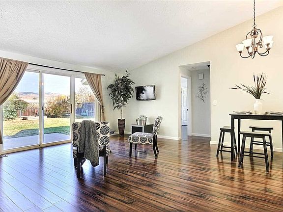 Top quality remodel w/sweeping views of foothills. Single level, hi-efficiency furnace/AC units installed in 2014, engineered Espresso hardwoods, new moldings & plumbing/lighting fixtures, designer colors, vaults. Triple length sliders off great room create a wall of glass overlooking unobstructed views, huge fully fenced yard & no back neighbors. Private master w/custom walk-in closet & dual sinks. Ideally located on culdesac, minutes from walking paths, community pools, rec center, & top elementary school