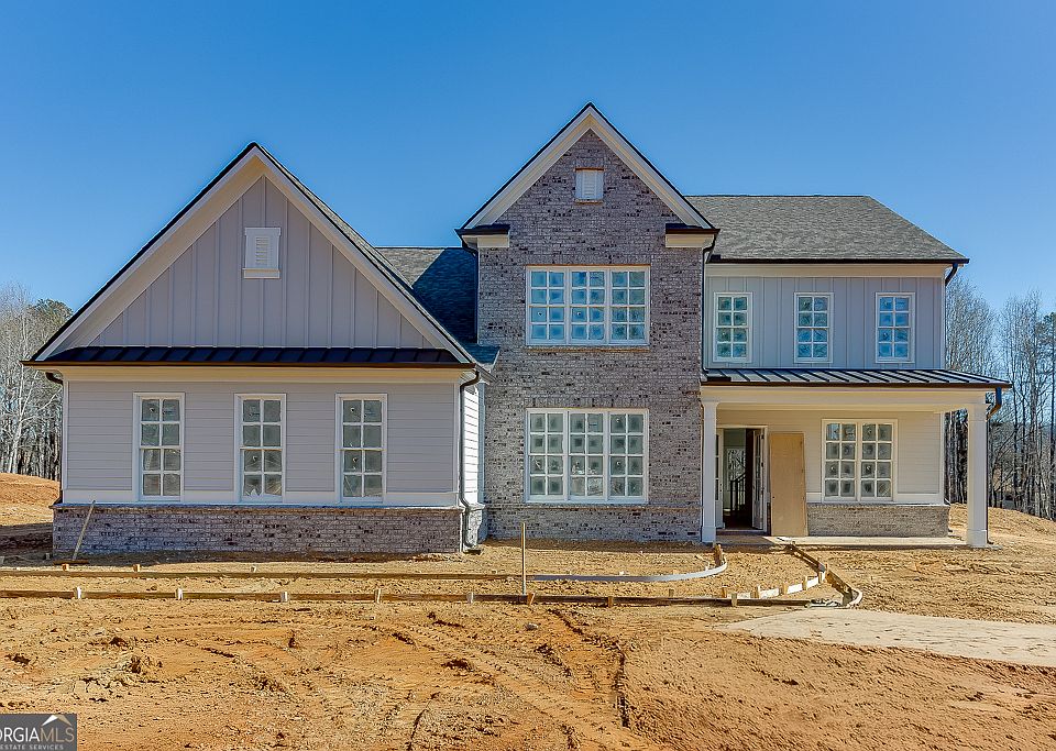 The Addison by Tipton Homes is a thoughtfully designed Craftsman-style residence featuring 4 bedrooms, 3.5 baths, abundant upgrades, and a desirable 3-car garage-all set on nearly 2 acres with no HOA. A covered front porch leads into an impressive foyer with 10' ceilings on the main level (9' upstairs) and immediate access to a light-filled study, perfect for a home office or flex space. Across the hall, the formal dining room connects seamlessly to the gourmet kitchen through both a butler's pantry and a spacious walk-in pantry. The chef's kitchen boasts quartz countertops, stainless steel appliances including a double oven, and an inviting eat-in island. Overlooking the expansive family room-with wood beams, built-in cabinetry, a custom fireplace, and an adjoining breakfast area-this layout offers an effortless flow for everyday living and entertaining. Step outside to the covered rear porch, complete with a brick fireplace, ideal for year-round entertainment and relaxation. The main-level primary suite is privately positioned at the rear of the home and features a spa-inspired bath with a luxury walk-in shower, quartz double vanity, and dual walk-in closets. A main-level guest suite with a private bath, powder room, laundry room, and mudroom with built-in lockers add convenience and functionality. Upstairs, you'll find two generous secondary bedrooms and a full bathroom. Set in a prime location with quick access to Hwy 400, dining, shopping, and entertainment, this home offers the perfect blend of comfort and craftsmanship. Under construction-please use caution when visiting.