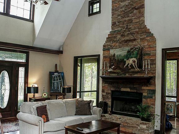This 4 bedroom 3 bath unique home is cozy yet spacious; the layout provides everyone with their own space and features 2 living areas. The home is situated on 2 lovely acres. Enter into the main level which features a soaring vaulted ceiling and open kitchen with bar seating, dining area with large bay window, additional sunroom space off the living area and a bedroom and full bathroom. One floor up, you will find the master bedroom on it's own level, complete with full master bathroom. On the basement level is a large separate living space, the laundry room, 2 bedrooms and a full bathroom. Located on a quiet road, just far enough out of town to be private but still convenient to all amenities. Truly a one of a kind home!