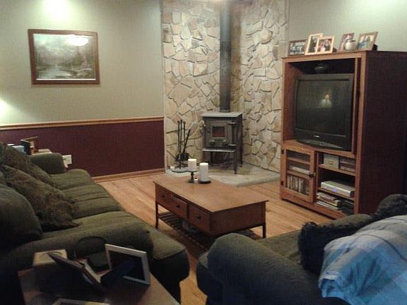 Perfect Ranch home on over half an acre. Close to JOCO line! There is so much new on this one. Newer siding, windows, doors, deck and more. Full finished walk up basement with 3rd bedroom, rec room and large laundry stubbed for a bathroom. Private setting with a view of the neighbors pond. Great home with low maintenance. Hardwood floors on the main level with two bedrooms with double closets. Wood burning stove in the living room. New exterior paint. Storage shed and dog run with utilities. Central Vac!!