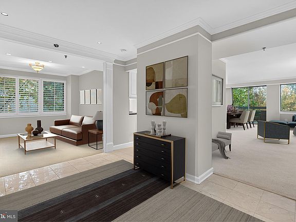 This spacious, light-filled corner unit Cambridge model offers 1,756 square feet of beautifully maintained living space, featuring two bedrooms, two full bathrooms, a versatile den, and a convenient half bath. Thoughtful updates include a renovated kitchen with upgraded cabinets (2005), hall bathroom (2005), primary bathroom (2006), freshly painted throughout and new carpet in bedrooms (October 2025) along with numerous enhancements such as recessed lighting; custom closet organizers; built-in cabinetry in the kitchen, bedrooms, and laundry room; and elegant finishes including marble flooring in the foyer, hallway, and powder room. The primary suite boasts two generous walk-in closets, a large custom shower, double vanity. Recent appliance upgrades include a Bosch dishwasher (2022), Kitchenaid range, refrigerator (2004), built-in microwave hood (2024), Insinkerator garbage disposal (2024), and a hot water dispenser (2018). Whitley Park residents enjoy an impressive array of resort-style amenities, including full concierge service, an outdoor Olympic-sized swimming pool, year-round tennis courts (open-air in summer and climate-controlled in winter), a fully equipped fitness center with showers and sauna, library, party room, and basic cable service. This pet-friendly, well-managed community offers a comprehensive condo fee that covers water, sewer, HVAC maintenance and replacement, health club access, lawn care, snow and trash removal, and on-site management. A true bonus for residents, this home includes TWO DEEDED parking spaces (one garage and one surface) plus a dedicated storage unit—an uncommon and highly sought-after feature in this community. Perfectly situated along the Bethesda Trolley Trail and minutes from Grosvenor Metro, Rockville Pike, dining, shopping, parks, and I-495, this home offers the perfect combination of space, convenience, and lifestyle in one of the area’s most desirable communities. VIRTUALLY STAGED RENDERINGS WILL BE AVAILABLE ON FRIDAY, OCTOBER 31.