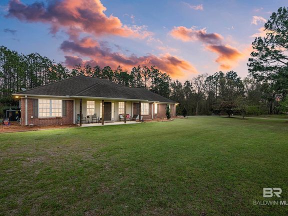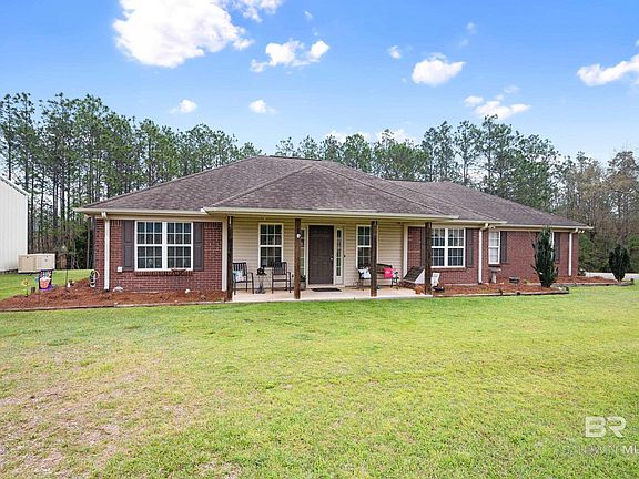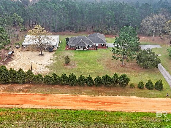 Country Living Welcomes You! No Covenants, Restrictions, or HOA! This pretty 3BR/2BA brick home and shop sits neatly on 11.4 acres in Perdido Alabama! Just a few of its many features are a split floor plan, full home water filtration system, gas generator, 3-year-old AC, spacious kitchen with stainless appliances, pantry, bar and breakfast room, large living room with tray ceiling, separate dining room, front porch, covered and open patio, alarm, system, and two car garage with storage and much more! The massive 30 x 55 shop consists of three bays, bathroom and is heated. It is also powered by the gas generator. The land consists of three parcels all being sold together. Beautiful leveled front yard with mature trees and woods surrounding the home on three sides. The property is perfect for hunting or just admiring the wildlife while enjoying the peace and quiet. Note that it is located on a dirt road. Call to schedule your showing today!