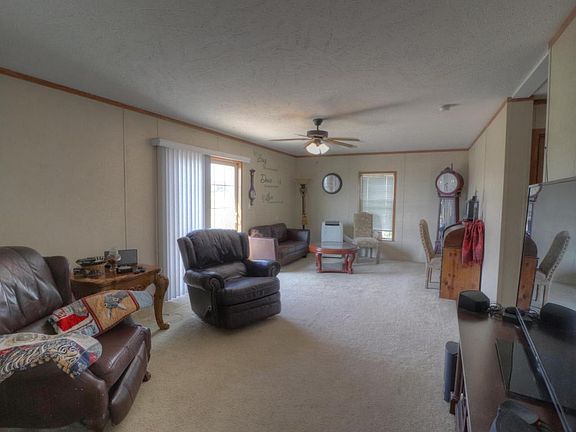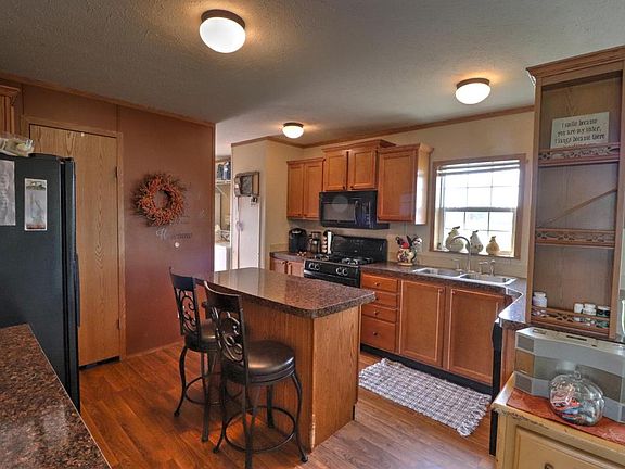 Looking for a home on with space for your toys? Don't miss this one! Built in 2011, this 3 bedroom, 2 bath home has 2 living areas and an open concept design. Features include a bay window in the living room, Kitchen island, plenty of cabinets in the kitchen for your storage needs plus a pantry! There are two decks on the property, shutters and upgraded stone skirting. (Can be FHA financed).